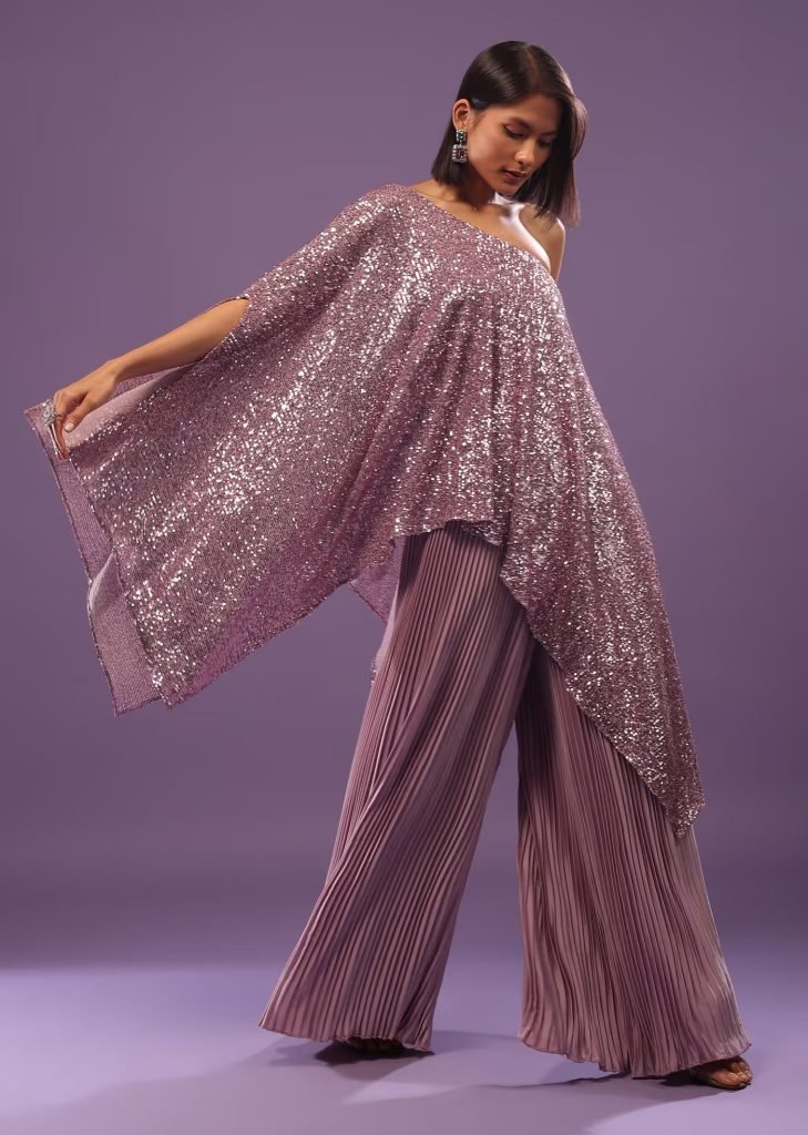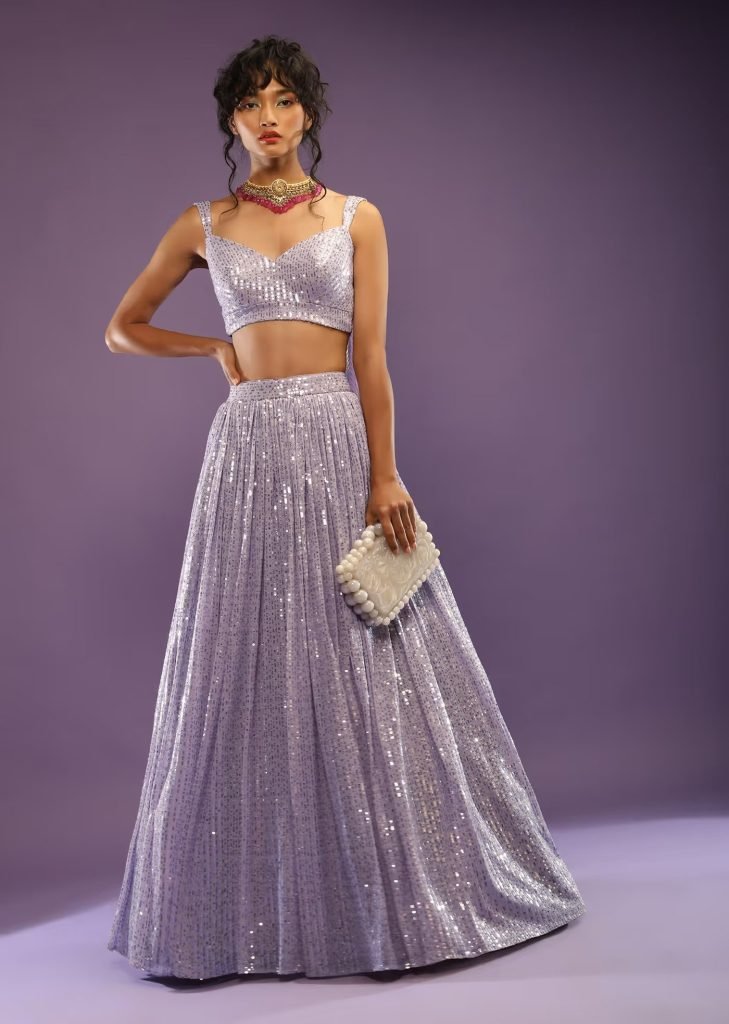 Lavender Sequins Net Readymade Lehenga