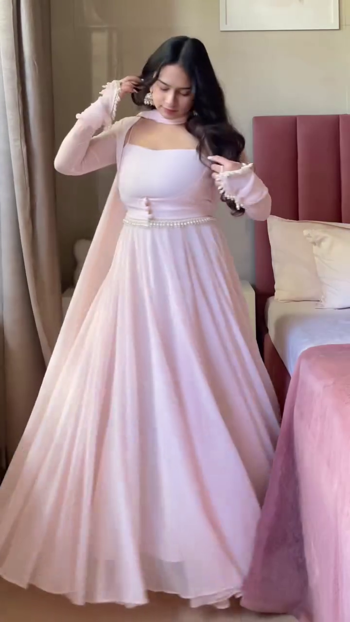 A perfect blend of tradition, elegance, and modern fashion, this Pink Georgette Anarkali Dress is a must-have addition to every woman’s ethnic wardrobe.