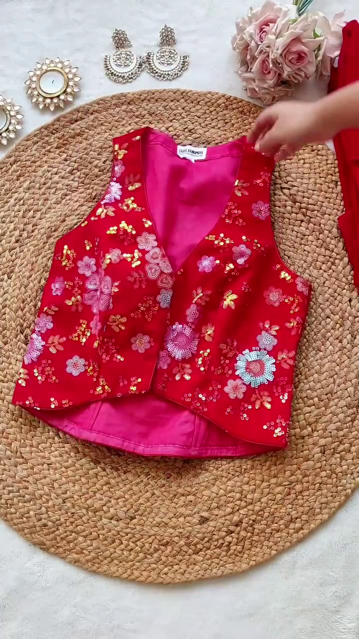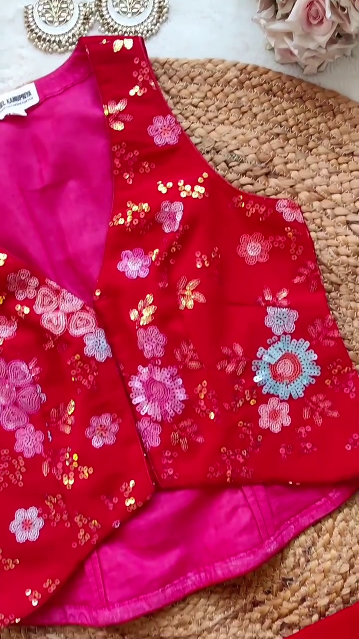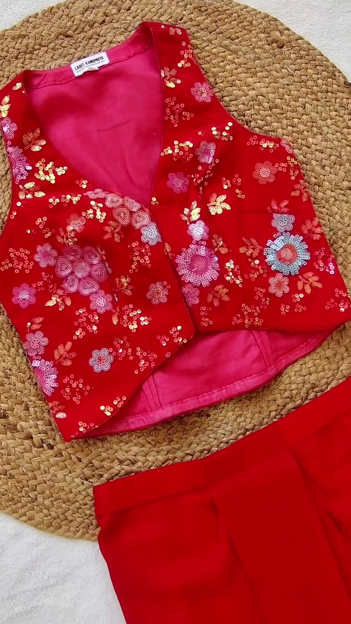Fabric : Georgette (Jacket, crop top and sharara)