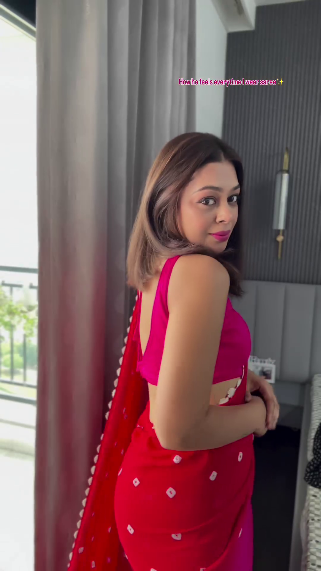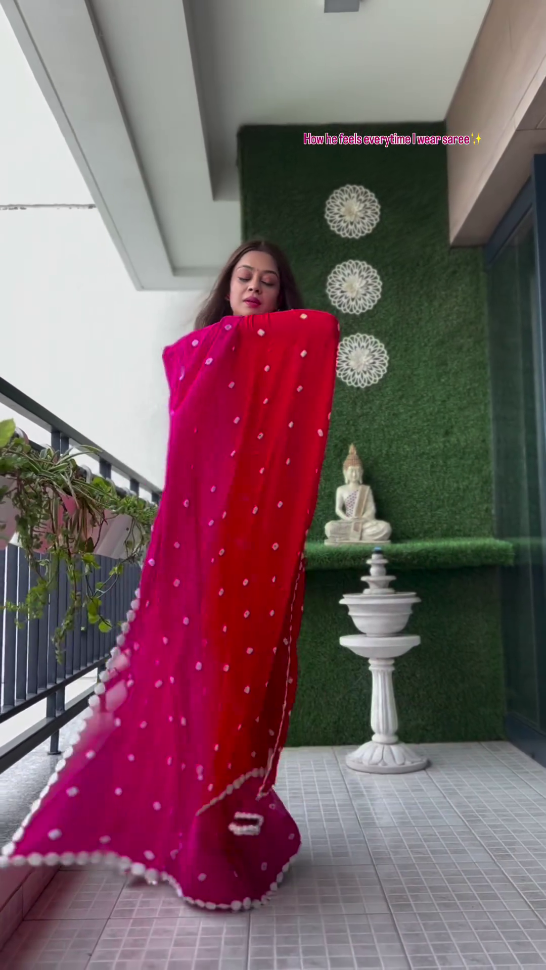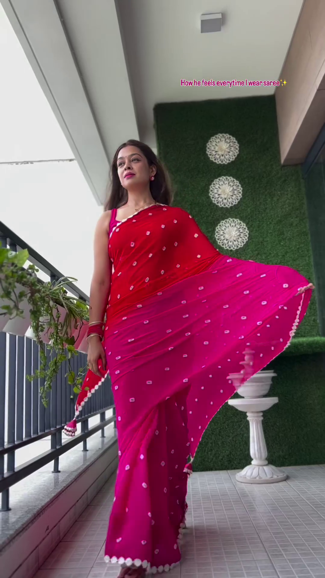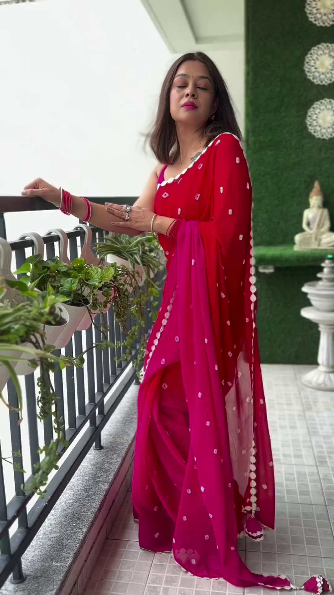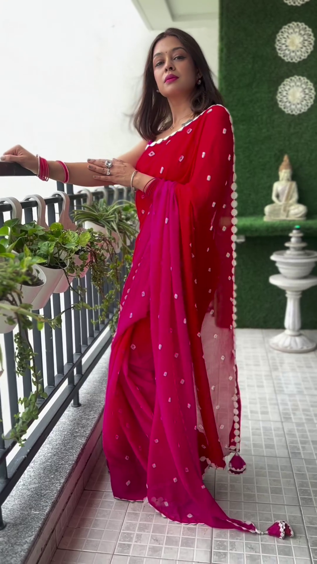 • Red and white saree