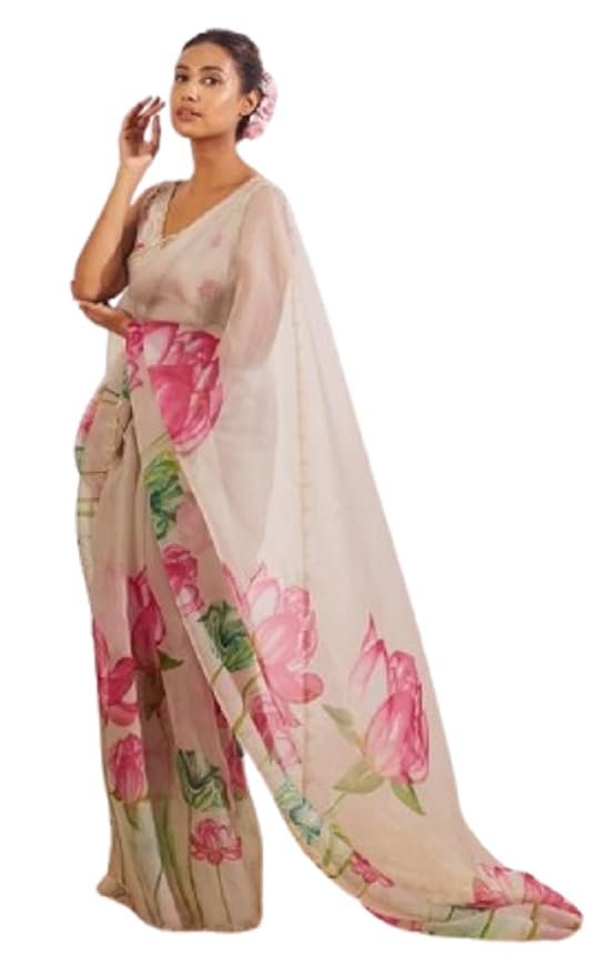 Women’s And Girls Soft Organza Saree With floral print ladies Design Wear Sarees Latest Sadi Party Sari collections wedding Bollywood stylish With Blouse Piece